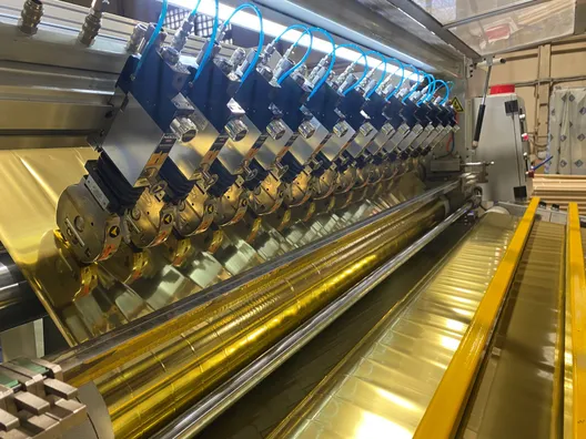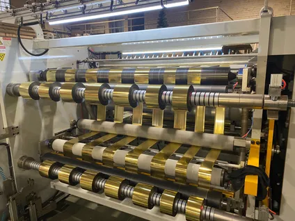 Оборудование установленное на нашем производстве — современный образец инновационных разработок, позволяющий производить нарезку фольги на рулоны быстро, максимально качественно, а самое главное одновременно нескольким заказчикам.